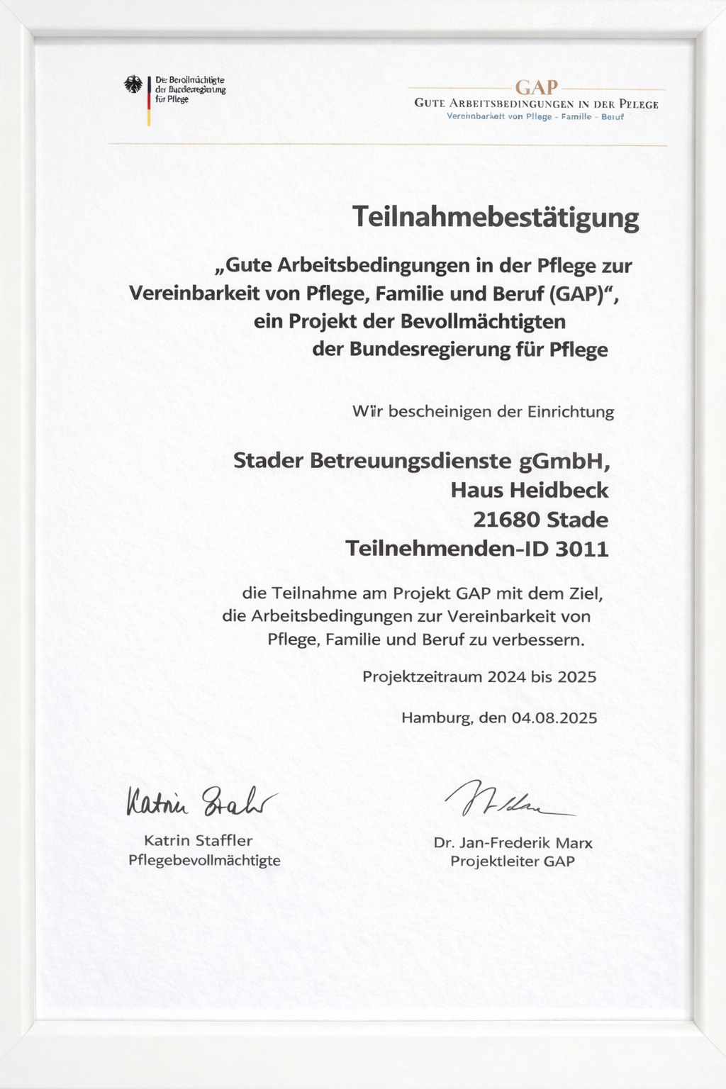 Der Abschluss des GAP-Projektes markiert für uns keinen Endpunkt, sondern einen wichtigen Meilenstein. Die gewonnenen Erkenntnisse fließen kontinuierlich in unseren Arbeitsalltag ein und bilden eine tragfähige Grundlage für weitere Entwicklungsprozesse. Das Projekt hat den Zusammenhalt gestärkt und unser Wir-Gefühl nachhaltig gefördert.