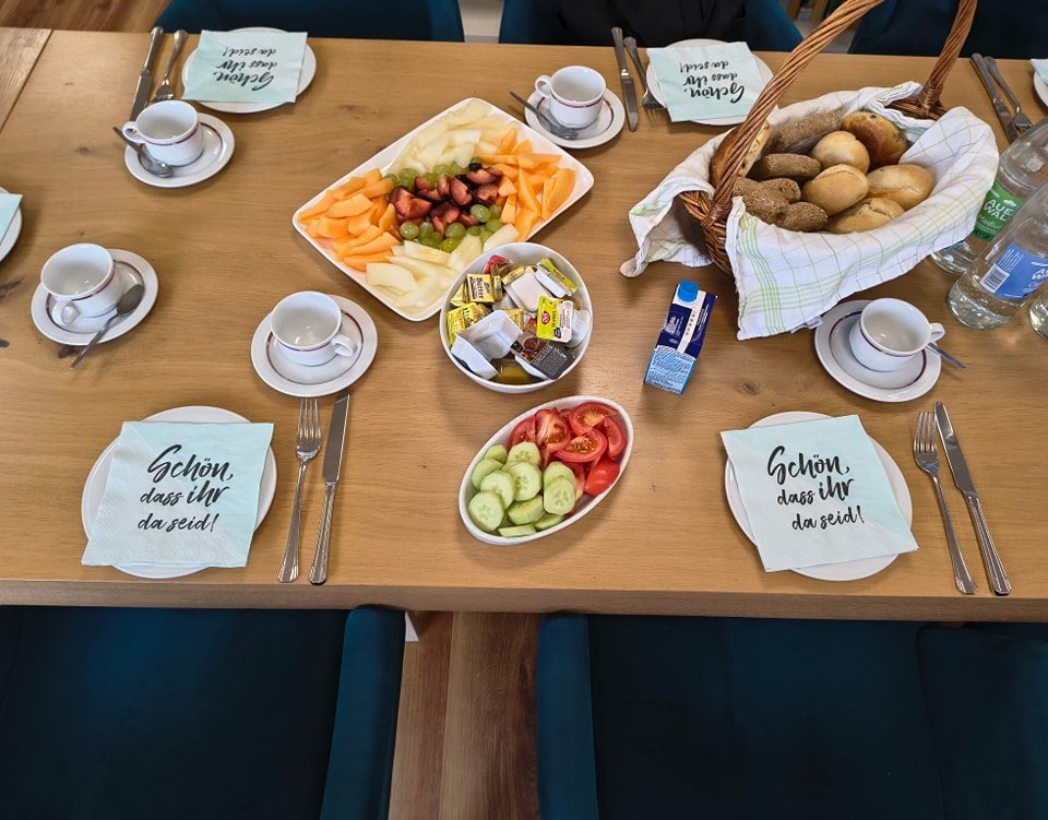 Zum Start in die spannende Ausbildungszeit gab es ein gemeinsames Frühstück mit den Praxisanleitern und Leitungskräften – eine schöne Gelegenheit für erste Gespräche, wichtigen Informationsaustausch und einen Überblick über den Ablauf der kommenden Zeit.